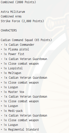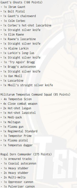 3rd Place: Giacomo Tirelli, Astra Militarum (Imperial Guard) Army Lists