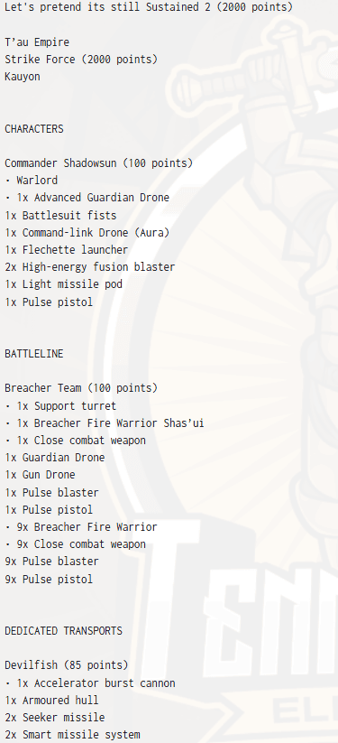 The Tau Empire claimed victory at the Tennessee Elite Open with a list that felt more like a live-fire training exercise than a close match.