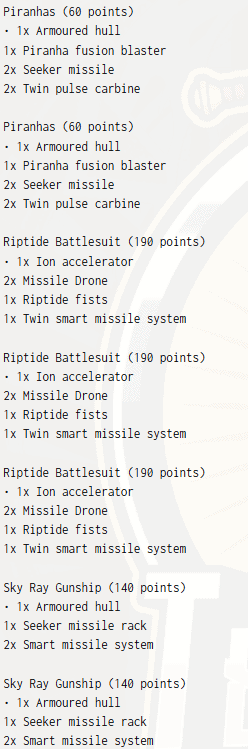 The Piranhas struck fast and hard, each armed with fusion blasters and seeker missiles. The Riptide Battlesuits anchored the army’s center, three towering mechs armed with ion accelerators and smart missile systems.