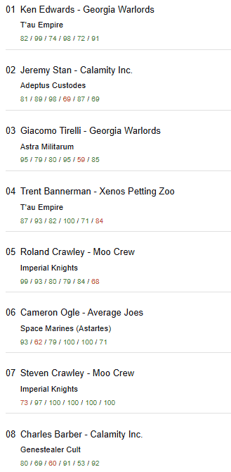 Tennessee Elite Open Final 40k Army Lists Tournament Standings: