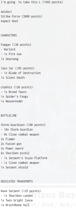 2nd Place: Riley Morris, Eldar (Aeldari) Army Lists