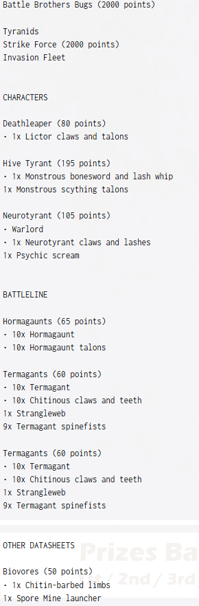 1st Place: Ryan Karrer, Tyranids Army Lists