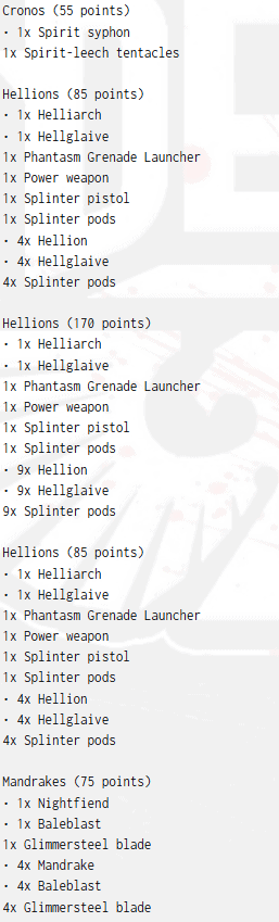The real key is the speed layer, with Hellions, Reavers, and double Mandrakes constantly poking weak spots, stealing objectives, and forcing opponents to waste turns cleaning up problems that keep popping up. Then the Scourges handle the unglamorous part with dark lances and haywire, so the brawlers can keep bullying the pieces that actually matter, with a Cronos quietly keeping the whole murder circus running longer than expected.