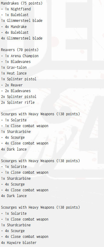 2nd Place: Cody Jiru, Drukhari Army Lists (Dark Eldar)