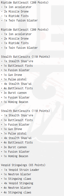 On secondaries and mission actions, the army does not have to sacrifice damage to get work done. Pathfinders and Stealth suits handle a lot of the utility and positioning plays, Piranhas trade for space when needed, and Vespid clean up the awkward late-game points that swing close games. The key is that the list stays aggressive without getting reckless, because the scoring pieces can support the kill plan through spotting, and the kill pieces keep the opponent too busy scrambling to comfortably chase points.