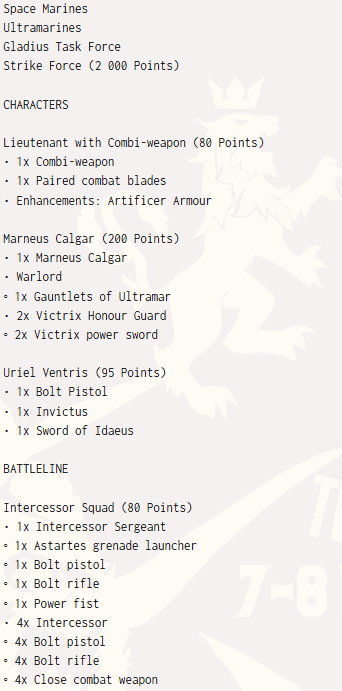 1st Place: Jakub Jansa, Ultramarines (Space Marines) Army Lists