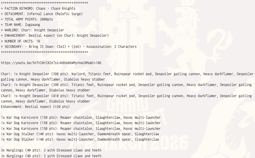 3rd Place: Luis Stiemerling, Chaos Knights Army Lists