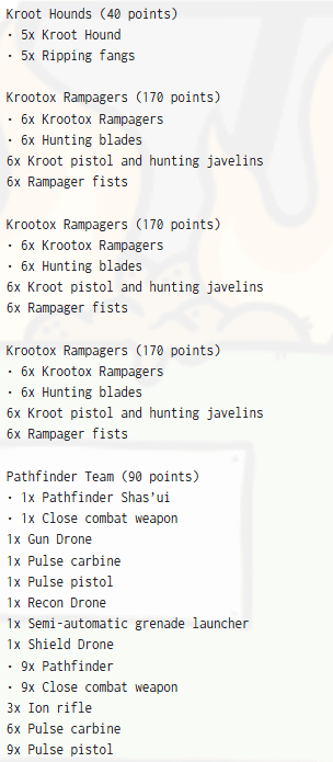 This is also one of the army’s best pressure valves. Not every problem needs fusion. Sometimes the answer is just throwing a wall of angry Krootox into the center and daring the opponent to deal with it while the Tau shooting takes apart whatever is behind them.