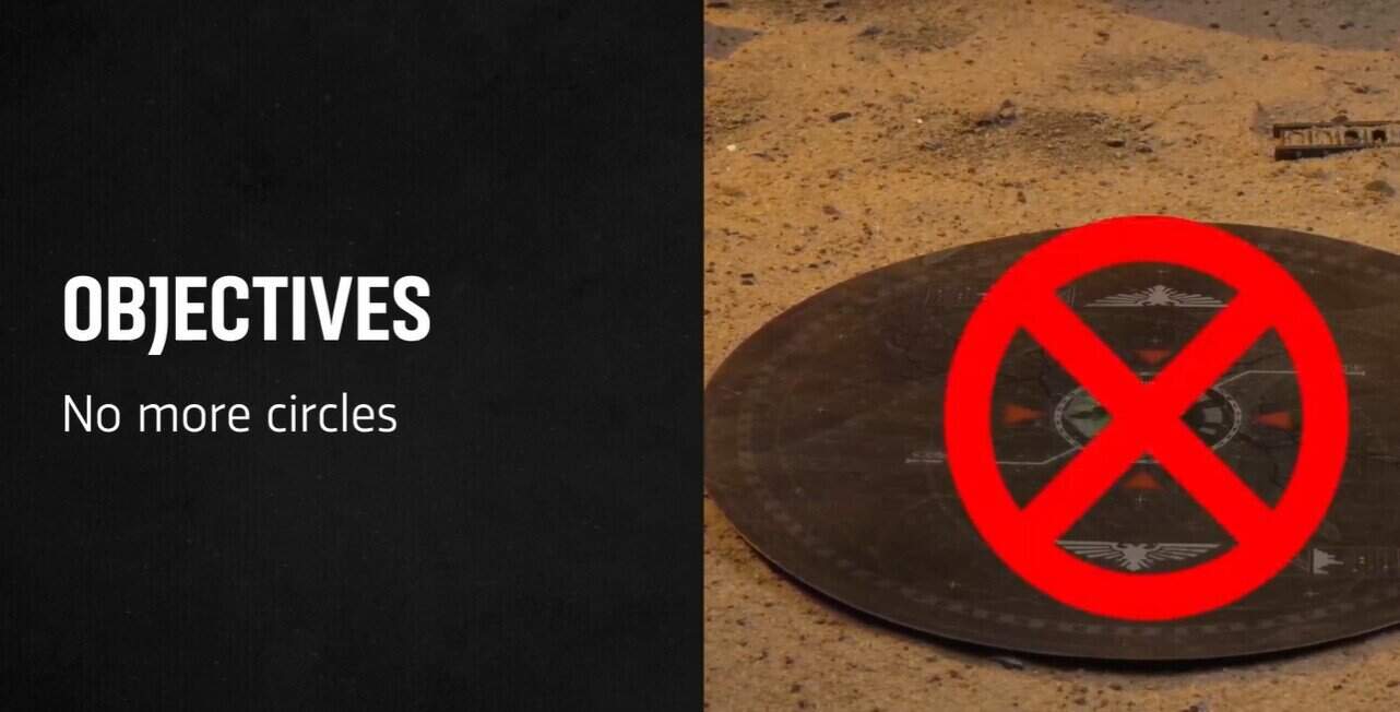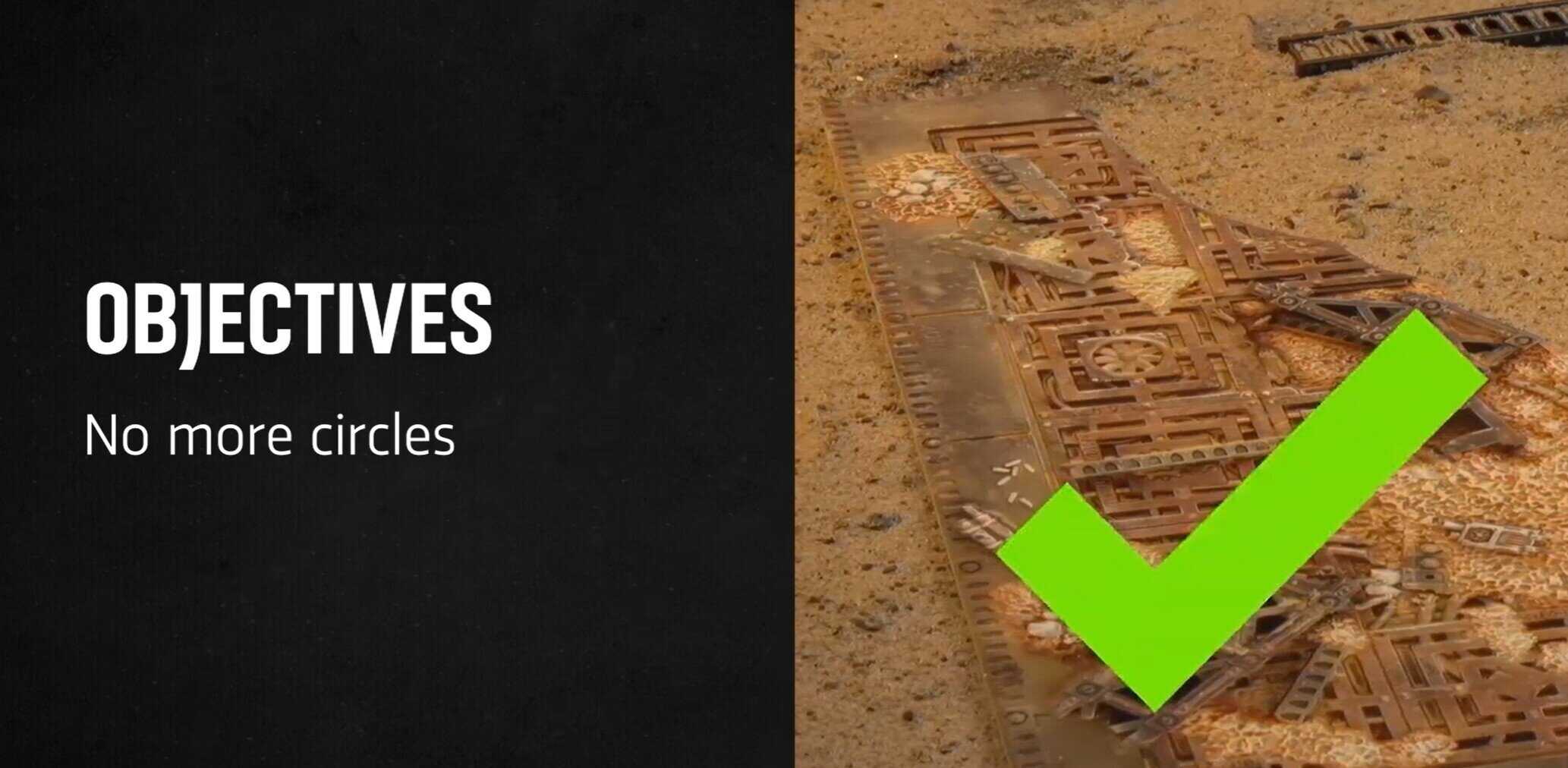 Objective circles have been one of those things players just accepted, even when they sometimes looked awkward on a beautifully built table. Swapping to terrain footprints could make objectives feel more natural, more immersive, and more connected to the battlefield itself.
