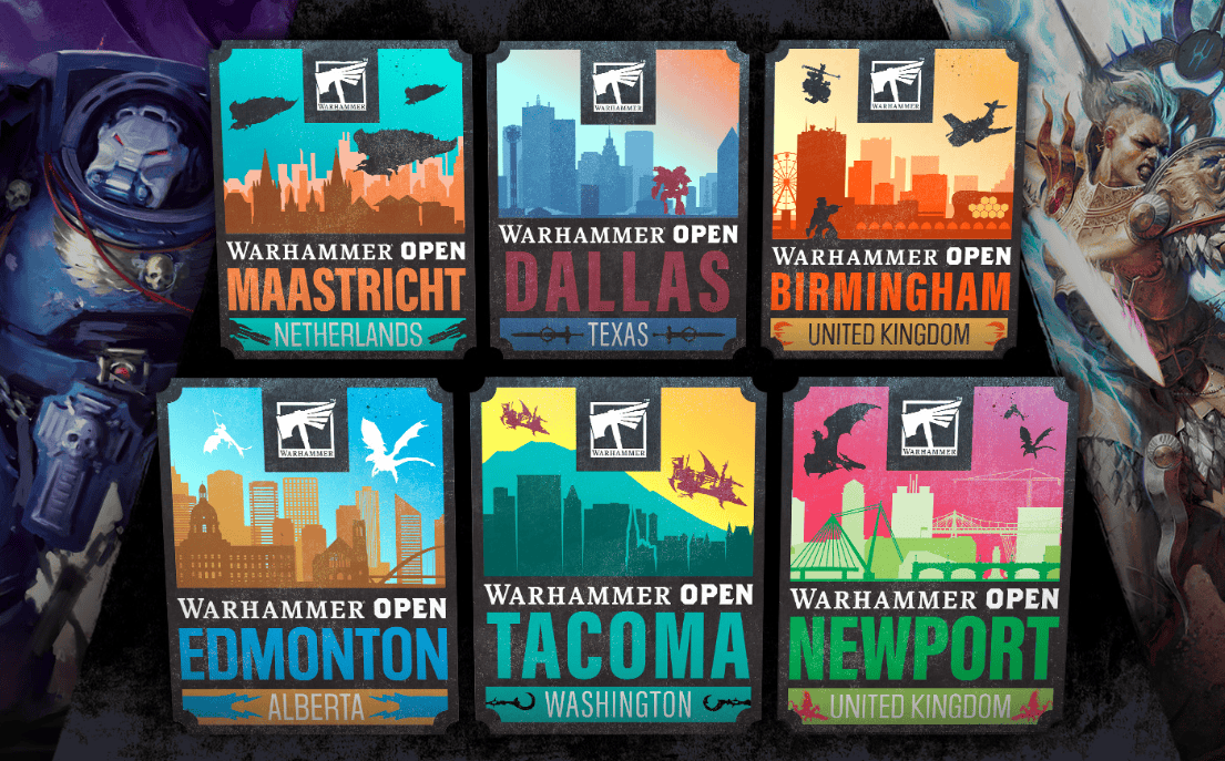 The Warhammer Open Series 2026 is a six-stop run through Maastricht, Dallas, Birmingham, Edmonton, Tacoma, and Newport, each built around three-day Grand Tournaments plus a more curated hobby-weekend structure.